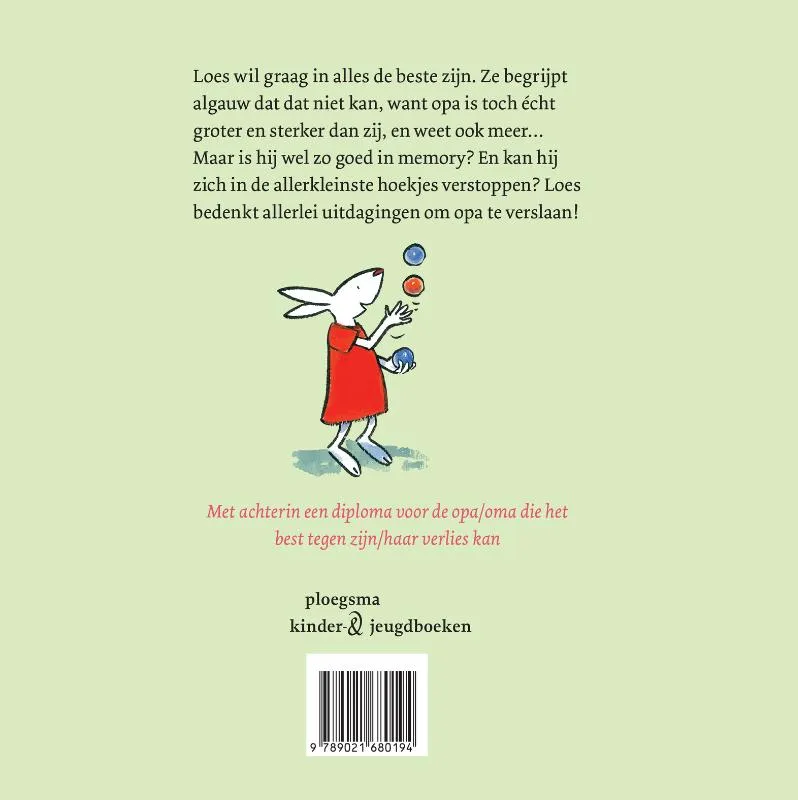 Loes wil graag in alles de beste zijn. Ze begrijpt algauw dat dat niet kan, want opa is toch écht groter en sterker dan zij, en weet ook meer… Maar is hij wel zo goed in memory? En kan hij zich in de allerkleinste hoekjes verstoppen? Loes bedenkt allerlei uitdagingen om opa te verslaan!