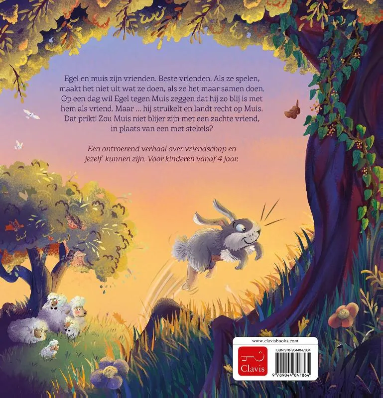 Egel en muis zijn vrienden. Beste vrienden. Als ze spelen, maakt het niet uit wat ze doen, als ze het maar samen doen. Op een dag wil Egel tegen Muis zeggen dat hij zo blij is met hem als vriend. Maar … hij struikelt en landt recht op Muis. Dat prikt! Zou Muis niet blijer zijn met een zachte vriend, in plaats van een met stekels?