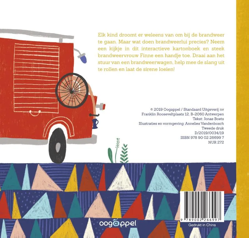 Elk kind droomt er weleens van om bij de brandweer te gaan. Maar wat doen brandweerlui precies? Neem een kijkje in dit interactieve kartonboek en steek brandweervrouw Finne een handje toe. Draai aan het stuur van een brandweerwagen, help mee de slang uit te rollen en laat de sirene loeien!