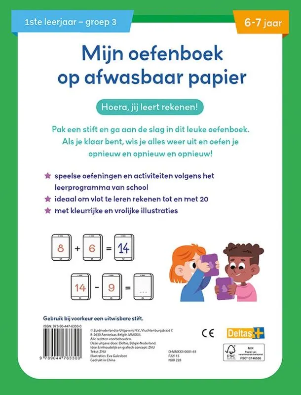 Dit leuke oefenboek op afwasbaar papier is herbruikbaar en dus ideaal voor kinderen die de sommen van op school willen oefenen. Laat je kind met een stift de oefeningen oplossen, uitwissen en opnieuw beginnen. Eindeloos oefenplezier verzekerd! Voor kinderen van 6 tot 7 jaar die willen leren rekenen TIP: Gebruik bij voorkeur een uitwisbare stift.