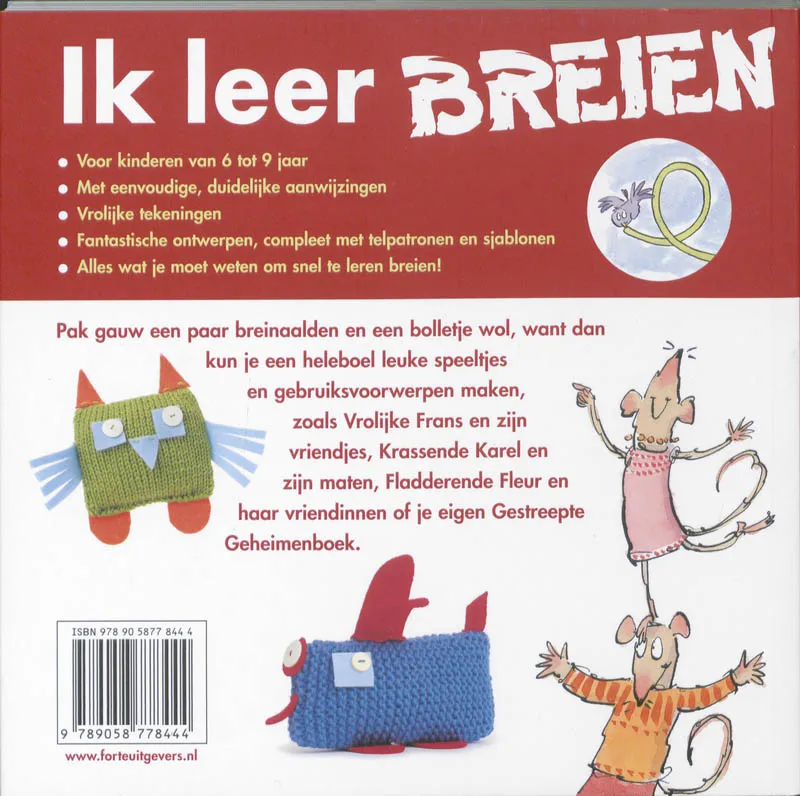 In dit boek leer je stap voor stap de eerste steken. Daarna ga je aan de slag met de kleurige ontwerpen: knuffeltjes als Vrolijke Frans en Krassende Karel of een gestreept boek in vrolijke kleurtjes. Je breiwerken worden helemaal speciaal als je er vormpjes van vilt aannaait. Zo worden het ook leuke cadeautjes voor vriendjes en vriendinnetjes. Je zult merken hoe leuk breien is. Vooruit, probeer het maar eens! Voor kinderen van 6 tot 9 jaar.