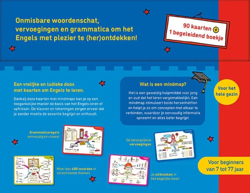 90 kaarten om gemakkelijk Engelse grammatica, vervoegingen en woordenschat te leren.