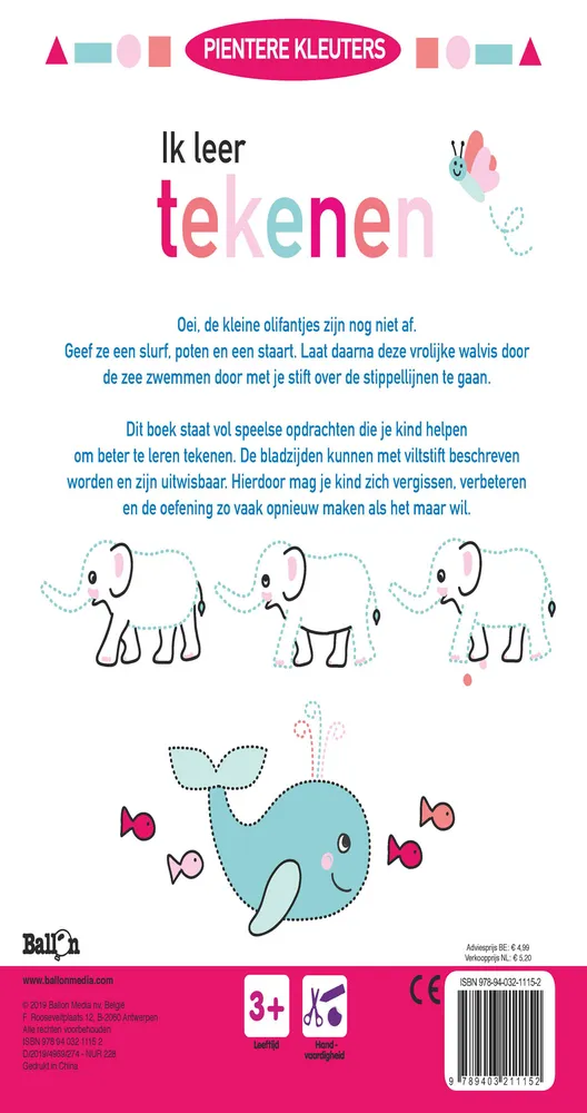 Dit boek staat vol speelse opdrachten die kinderen vanaf 3 jaar helpen om beter te leren tekenen. De bladzijden kunnen met viltstift beschreven worden en zijn uitwisbaar. Hierdoor mag je kind zich vergissen, verbeteren en de oefening zo vaak opnieuw maken als het maar wil.