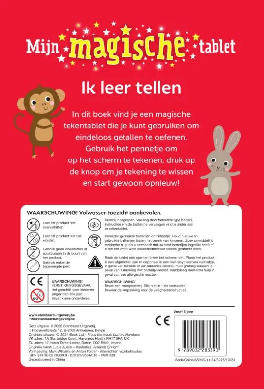 In dit boek vind je een magische tekentablet die je kunt gebruiken om eindeloos getallen te oefenen. Gebruik het pennetje om op het scherm te tekenen, druk op de knop om je tekening te wissen en start gewoon opnieuw!