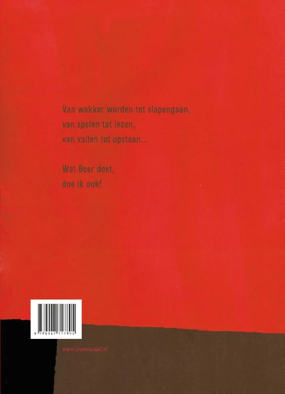 Iedere peuter en kleuter heeft wel iemand tegen wie hij opkijkt: of het nou een ouder is, een grote zus of een ingebeeld speelmaatje. Ik heeft Beer. En met Beer brengt Ik de hele dag door, van het wakker worden tot het slapengaan, van spelen tot lezen, van vallen tot opstaan… In heldere kleuren en vrolijke vormen beleeft Ik (en de lezer/kijker) de hele dag met Beer. Om de volgende dag opnieuw te beginnen, want dit boek zul je altijd blijven oppakken, generaties lang.