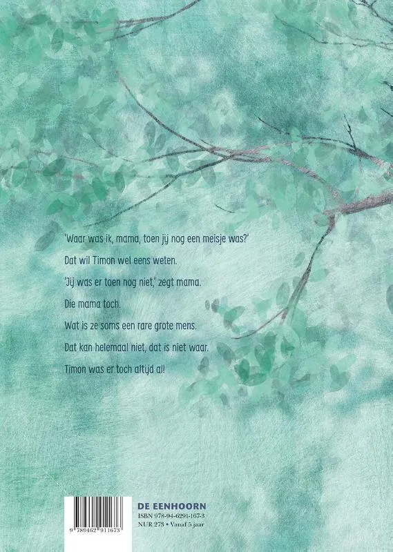 Waar was ik, toen mama nog een meisje was? Dat wil Timon graag weten. ‘Jij was er toen nog niet,’ zegt mama. Maar dat is niet waar! Misschien woonde hij helemaal boven in mama’s huis? Of hij zat verstopt in haar buik, als een vrolijk kikkervisje? Hij was de strepenpoes in de tuin of een blije vogel. Hij was er wel, maar mama zag hem niet … Timon weet het zeker: hij was altijd al bij mama.