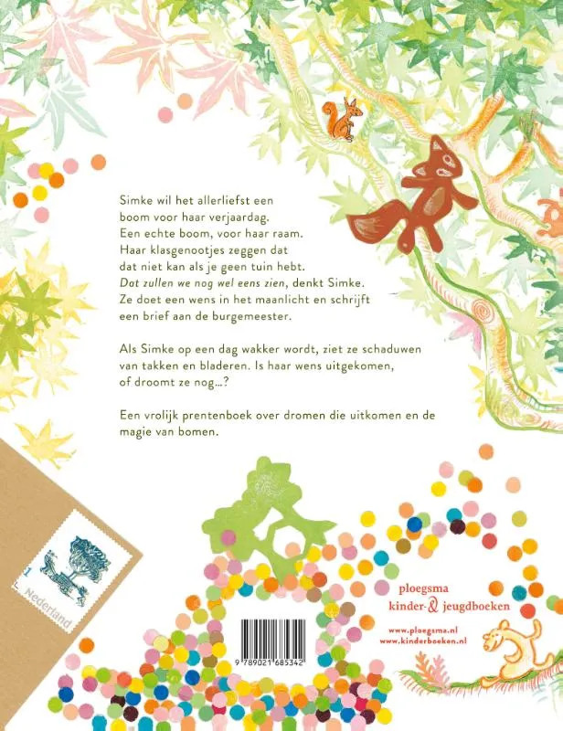 Simke is bijna jarig en ze heeft maar één grote wens: een boom in de straat. Ze schrijft een brief aan de burgemeester en wacht af. Als ze een paar dagen later wakker wordt, staat de straat vol bomen. Wat een geweldig cadeau! De hele straat komt tot leven: de boswachter vertelt over de dieren in de bomen, papa leest voor vanaf het balkon, er worden boomhutten gebouwd en kinderen spelen verstoppertje. Simke zou willen dat het bos voor altijd in hun straat blijft, maar kan dat wel?