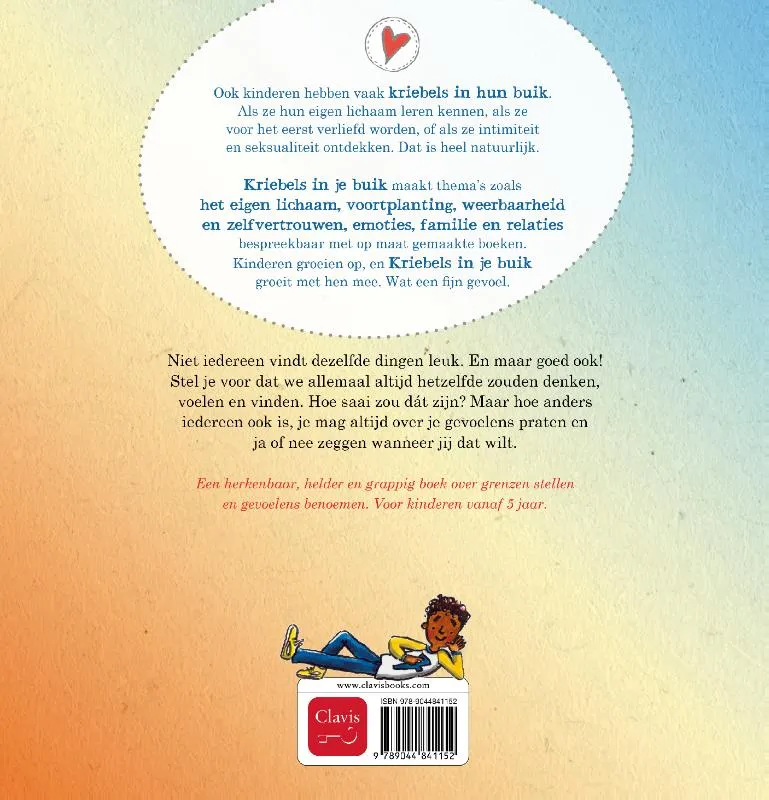Kriebels in je buik maakt thema’s zoals het eigen lichaam, voortplanting, weerbaarheid en zelfvertrouwen, emoties, familie en relaties bespreekbaar met op maat gemaakte boeken. Kinderen groeien op, en Kriebels in je buik groeit met hen mee. Wat een fijn gevoel.