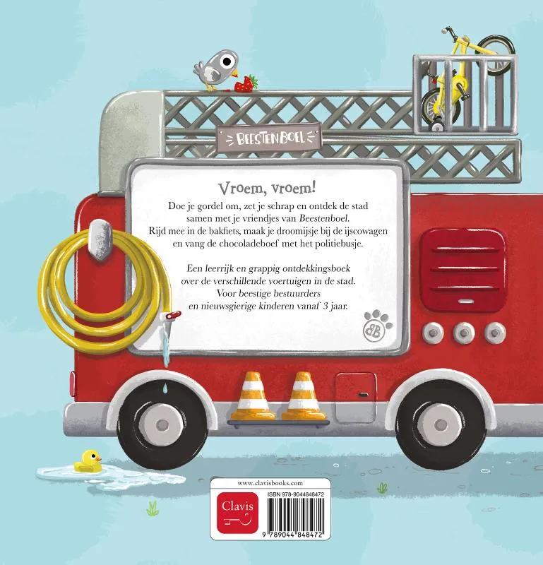 Doe je gordel om en zet je schrap om de stad te ontdekken met de vrienden van Beestenboel! Rijd mee in de bakfiets en haal een ijsje bij de ijscowagen. Prentenboek met gekleurde illustraties. Vanaf ca. 3 jaar.