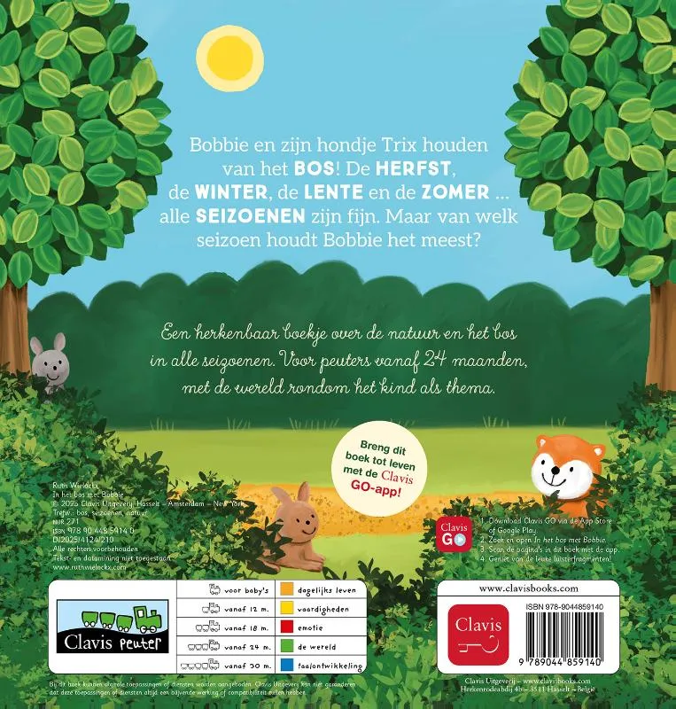 Een herkenbaar boekje over de natuur en het bos in alle seizoenen. Voor peuters vanaf 24 maanden, met de wereld rondom het kind als thema.