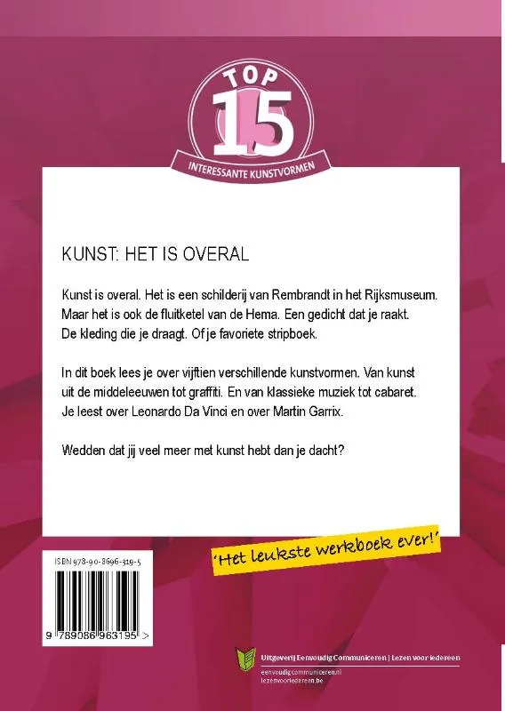 In dit boek lees je over verschillende kunstvormen. En waarschijnlijk kom je er dan achter dat je veel meer met kunst hebt dan je dacht!