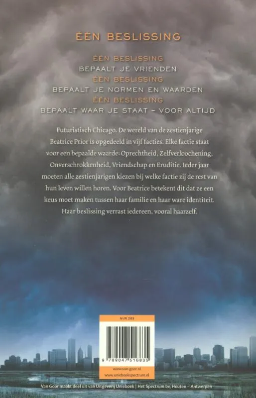 Futuristisch Chicago. De wereld van de zestienjarige Tris is opgedeeld in vijf facties: Oprechtheid, Zelfverloochening, Onverschrokkenheid, Vriendschap en Eruditie. Ieder jaar moeten alle zestienjarigen kiezen bij welke factie zij de rest van hun leven willen horen. Voor Beatrice betekent dit dat ze een keus moet maken tussen haar familie en haar ware identiteit. Haar beslissing verrast iedereen, vooral haarzelf.
