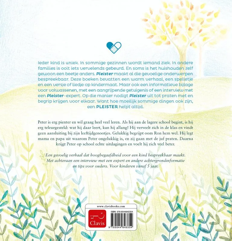 Ieder kind is uniek. In sommige gezinnen wordt iemand ziek. In andere families is ooit iets vervelends gebeurd. En soms is het huishouden zelf gewoon een beetje anders. Pleister maakt al die gevoelige onderwerpen bespreekbaar. Deze boeken bevatten een warm verhaal, een spelletje en een versje of liedje op kindermaat. Maar ook een informatieve bijlage voor volwassenen, met een aangrijpende getuigenis of een interview met een Pleister-expert. Op die manier nodigt Pleister uit tot praten met en begrip krijgen voor elkaar. Want hoe moeilijk sommige dingen ook zijn, een PLEISTER helpt altijd.