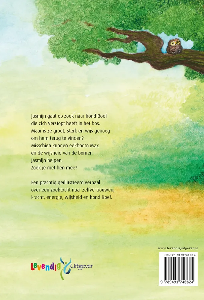 Jasmijn en de wijsheid van de bomen biedt een prachtig geïllustreerd verhaal over een zoektocht naar zelfvertrouwen, kracht, energie, wijsheid en naar hond Boef.