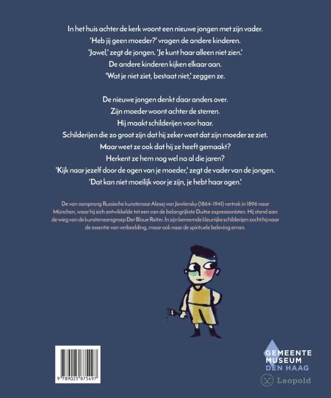 Maar daar denkt de nieuwe jongen anders over. Hij maakt schilderijen voor zijn moeder. Zo groot dat hij zeker weet dat zij ze vanachter de sterren kan zien. Maar hoe kan zij weten dat hij ze heeft gemaakt?<br>