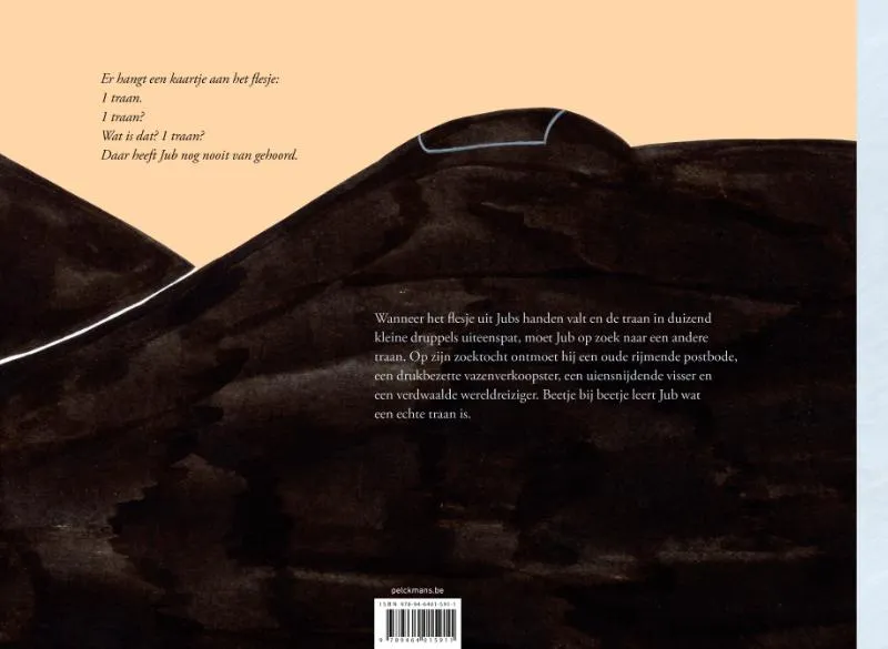 Wanneer het flesje uit Jubs handen valt en de traan in duizend kleine druppels uiteenspat, moet Jub op zoek naar een andere traan. Op zijn zoektocht ontmoet hij een oude rijmende postbode, een drukbezette vazenverkoopster, een uiensnijdende visser en een verdwaalde wereldreiziger. Beetje bij beetje leert Jub wat een echte traan is.