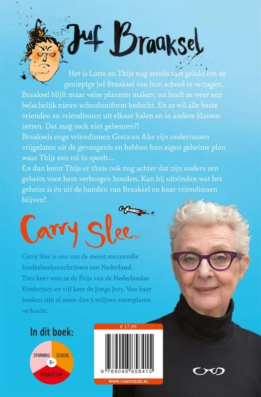 Het is Lotte en Thijs nog steeds niet gelukt om de geniepige juf Braaksel van hun school te verjagen, zelfs niet met de hulp van hun slimme vriend Lucas. Juf Braaksel blijft maar valse plannen bedenken: ze heeft bijvoorbeeld een belachelijk nieuw schooluniform bedacht. En ze wil nu alle beste vrienden en vriendinnen uit elkaar halen, en in andere klassen zetten. Dat mag toch niet gebeuren? <br>Braaksels enge vriendinnen Greta Granaat en Alie Cyaankali zijn ondertussen alweer vrijgelaten uit de gevangenis en hebben hun eigen geheime plan waar Thijs een grote rol in speelt…<br>En dan komt Thijs er thuis ook nog achter dat zijn ouders een groot geheim voor hem verborgen hebben gehouden. Kan hij erachter komen wat het geheim is én uit de handen van juf Braaksel en haar vriendinnen blijven?