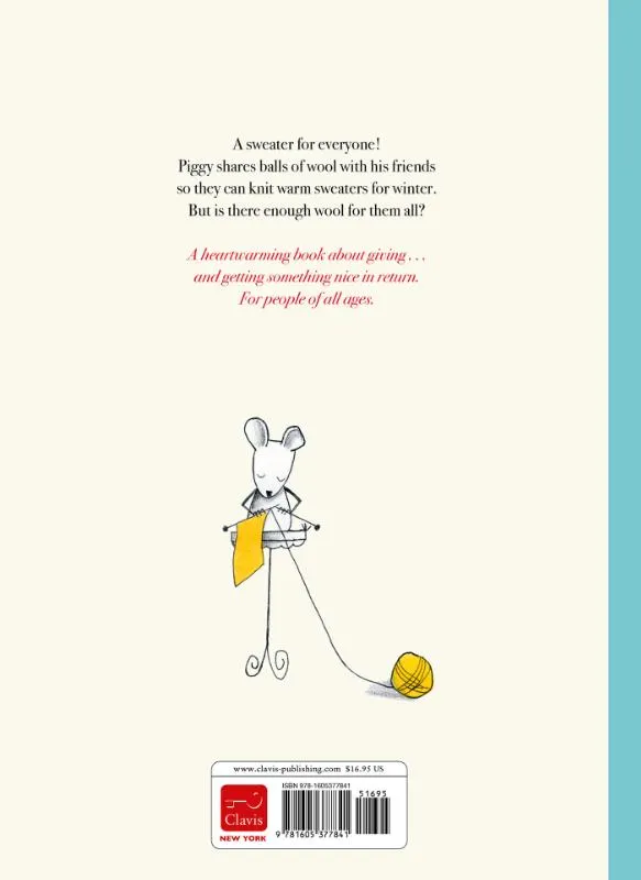 Als een varkentje op zolder een doos wol vindt, wil hij een fijne warme trui gaan breien. Maar eerst deelt hij wol uit aan al zijn vriendjes. Heeft hij nu nog wel genoeg voor zichzelf? Prentenboek met eenvoudige tekeningen in zwart-wit met slechts enkele kleuraccenten. Vanaf ca. 4 jaar.