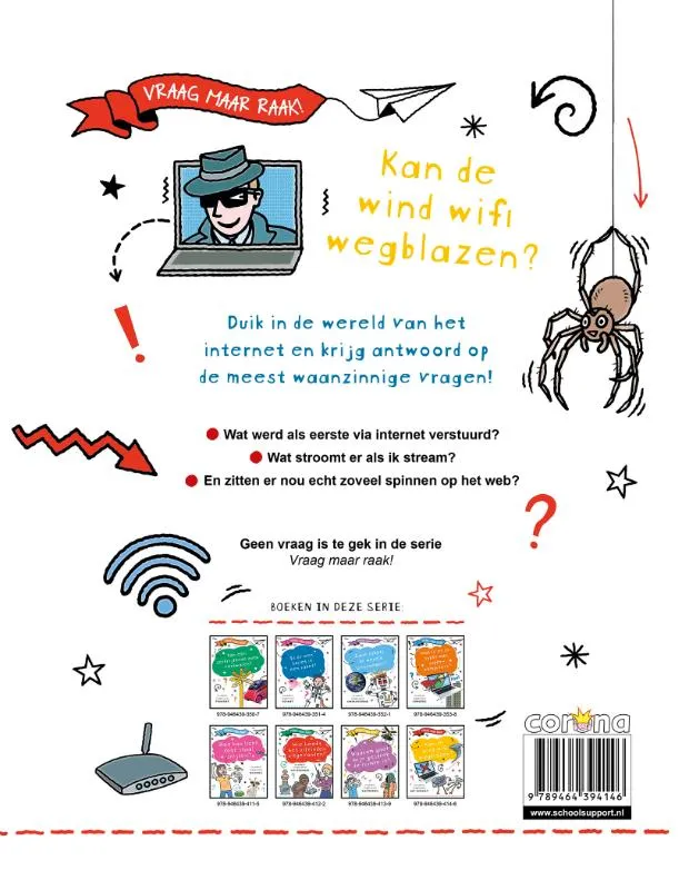 Duik in de wereld van het internet en krijg antwoord op de meest waanzinnige vragen! – Wat werd als eerste via internet verstuurd? – Wat stroomt er als ik stream? – En zitten er nou echt zoveel spinnen op het web? Geen vraag is te gek in de serie ‘Vraag maar raak!’