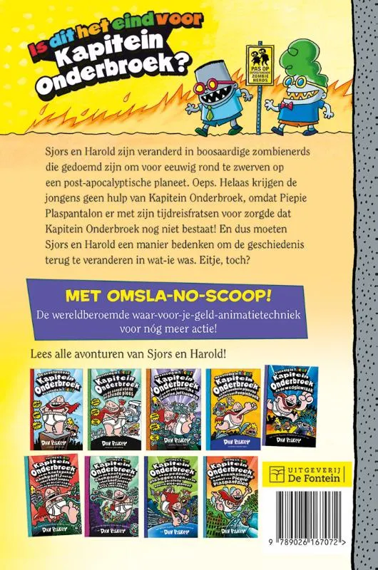 Kapitein Onderbroek 10, supergrappig vanaf 8 jaar. Sjors en Harold zijn veranderd in boosaardige zombienerds die gedoemd zijn om voor eeuwig rond te zwerven op een post-apocalyptische planeet. Oeps.