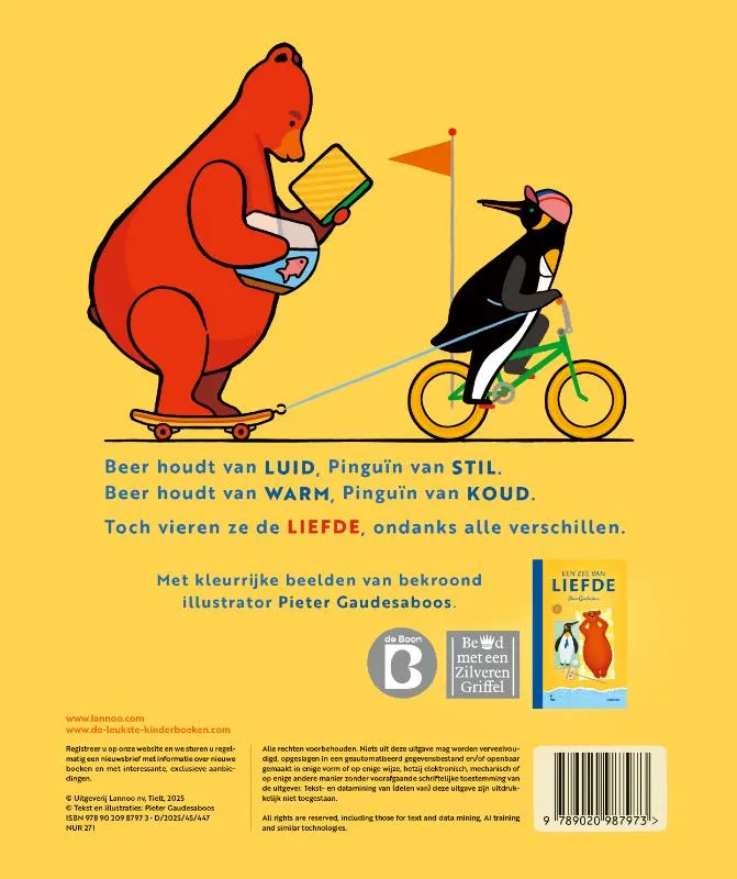 Beer houdt van warm, Pinguïn van koud en toch vieren ze de liefde, ondanks alle verschillen.