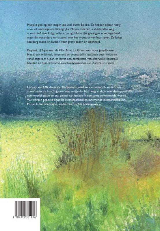‘Keigoed, of bijna’ won de PEN America Grant 2021 voor jeugdboeken. Het is een origineel, innemend en avontuurlijk leesboek voor kinderen vanaf ongeveer 9 jaar, en bevat een combinatie van sfeervolle kleurrijke beelden en humoristische zwart-witillustraties van Xantha-Iris Vorst.