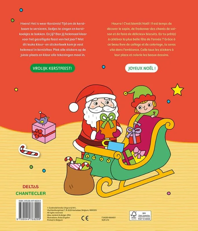 Met dit vrolijke stickerboek van Deltas kom je helemaal in kerstsfeer. Er staan een heleboel sfeervolle tekeningen in die allemaal ingekleurd moeten worden: de kerstman en zijn slee vol gepakt met cadeautjes, kinderen die de kerstboom versieren of samen liedjes zingen… Bovendien zitten er in dit boek een heleboel leuke stickers om de pagina’s helemaal af te maken. Voor urenlang plak- en kleurplezier!