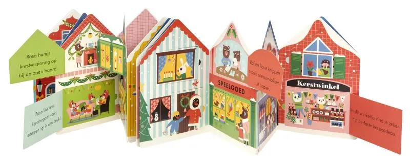Vouw de hele straat uit en spiek achter alle flapjes. Wat gebeurt er in de winkels? Wie woont waar? En kijk ook eens naar de achterkant van het accordeonboek, waar iedereen aan het schaatsen en aan het sleeën is bij de kerstmarkt. Dit grote uitklapboek is eenvoudig te sluiten met een lintje. Opnieuw een onweerstaanbare creatie van Ingela P Arrhenius, en het perfecte kerstcadeau onder de boom voor kinderen.