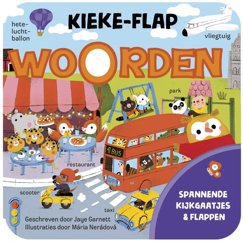 Kom nieuwe woorden leren met deze nieuwe vriendjes. Elke spread heeft twee flapjes met kiekeboe-gaatjes