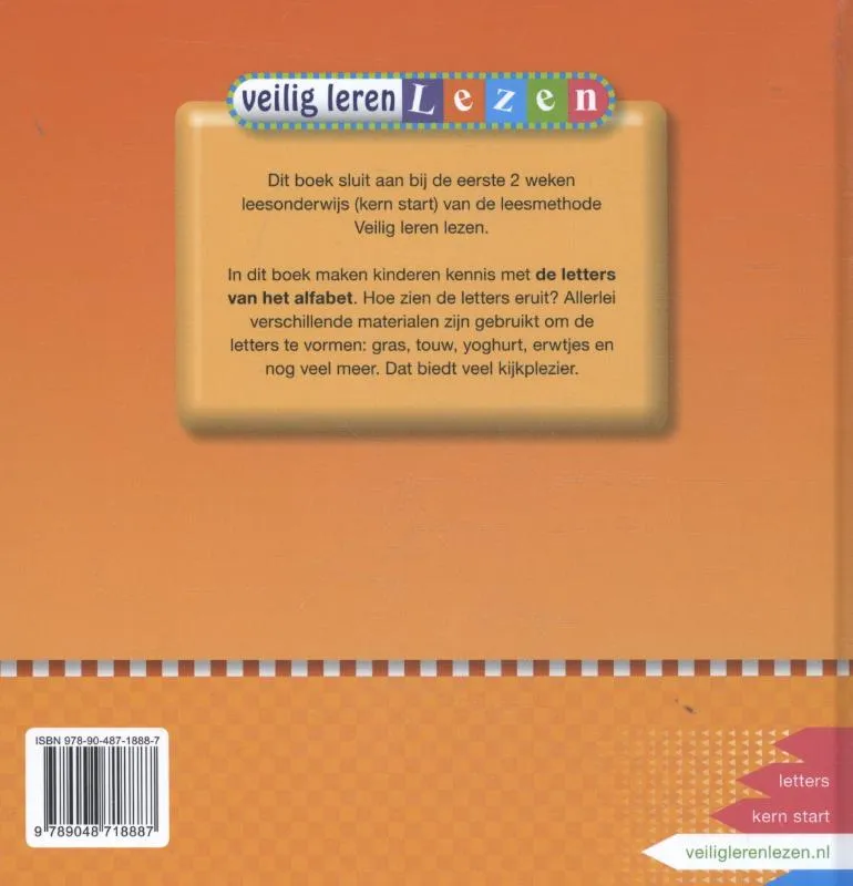 ABC-boek met op elke pagina een nieuwe letter van het alfabet, geschreven in materialen als touw, yoghurt en drop. Vanaf ca. 6 jaar.