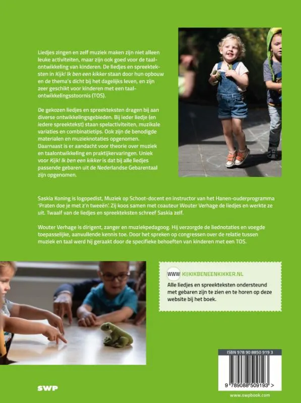 In een peutergroep op een kindcentrum zit gemiddeld één kind met een taalontwikkelingsstoornis (TOS) en ongeveer 7% van de kinderen op de basisschool heeft een TOS. TOS heeft grote impact op het leven van een kind. Het luisteren naar liedjes en zelf muziek maken is niet alleen een leuke activiteit, maar ook goed voor de taalontwikkeling. De liedjes in Kijk! ik ben een kikker zijn door hun opbouw en de thema’s die dicht bij het dagelijks leven staan zeer geschikt voor kinderen met een TOS.