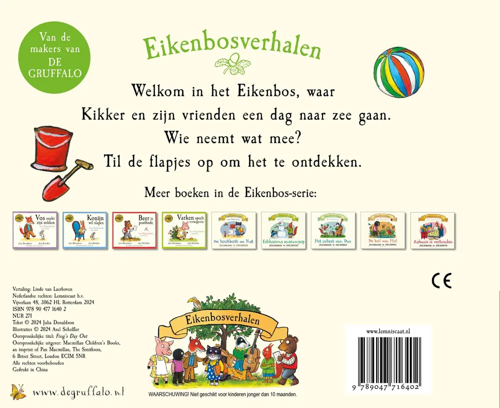 Nu is er een nieuw dier in het bijzondere bos van het Gruffalo-duo Donaldson en Scheffler. Kikker maakt plannen voor een dagje uit: hij gaat met zijn Eikenbosvrienden naar zee!