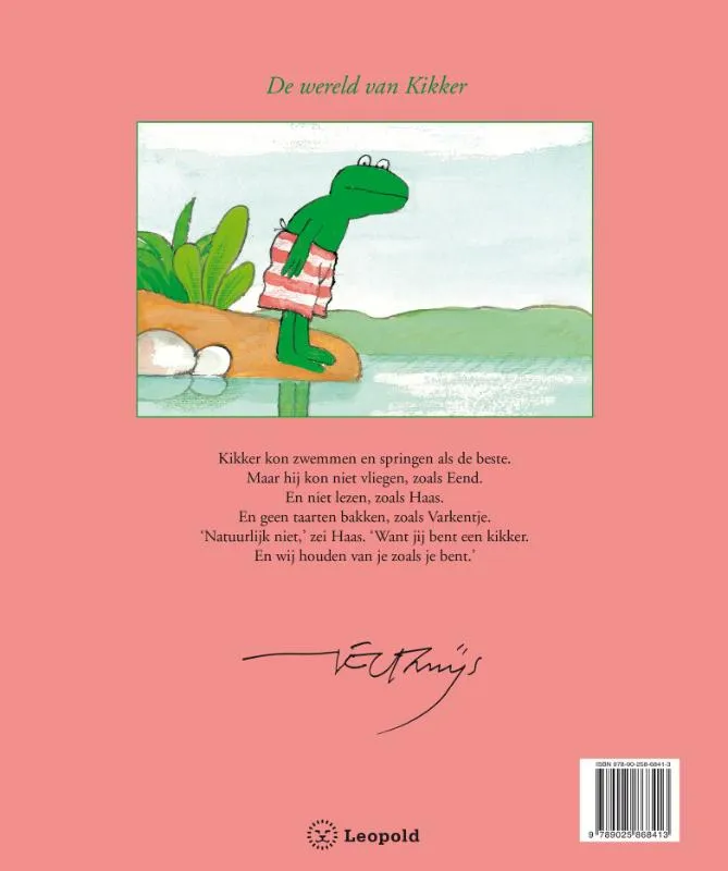Hartverwarmend prentenboek waarin Kikker leert dat hij niet hoeft te kunnen vliegen, lezen of taarten bakken als zijn vriendjes: ze houden van hem zoals hij is.