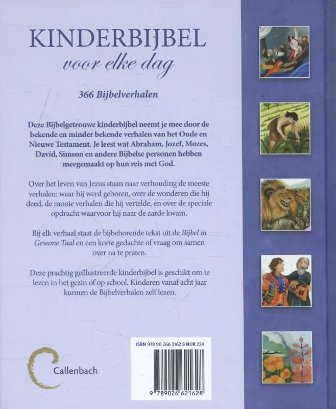 Een prachtig geïllustreerde kinderbijbel om thuis of op school voor te lezen. Kinderen vanaf acht jaar kunnen de Bijbelverhalen zelf lezen. De gebruikte Bijbelteksten komen uit de ‘Bijbel in Gewone Taal’.