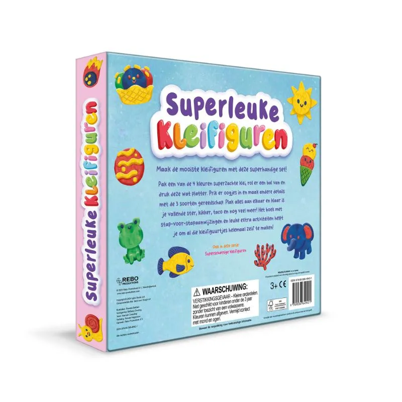 Maak de mooiste kleifiguren met deze superhandige set! Pak een van de 4 kleuren superzachte klei, rol er een bal van en druk deze wat platter. Prik er oogjes in en maak andere details met de 3 soorten gereedschap. Plak alles aan elkaar en klaar is je vallende ster, kikker, taco en nog veel meer! Het boek met stap-voor-stapaanwijzingen en leuke extra activiteiten helpt je om al die kleifiguurtjes helemaal zelf te maken!