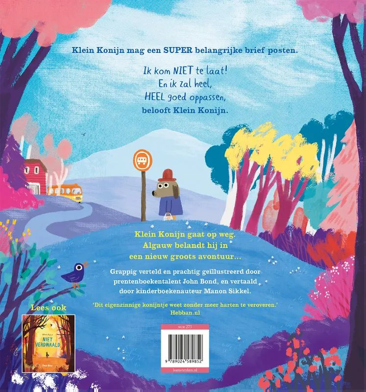 Klein Konijn helpt mama met een belangrijke taak: hij mag een brief posten. Voor hij op pad gaat belooft hij mama onderweg heel voorzichtig te zijn en de brief op tijd te posten. De kleine avonturier gaat op weg, maar algauw wordt hij afgeleid…