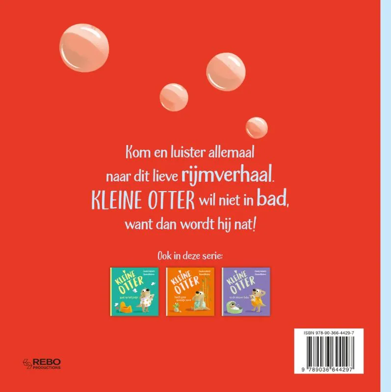 Kom en luister allemaal naar dit lieve rijmverhaal. Kleine Otter wil niet in bad, want dan wordt hij nat!