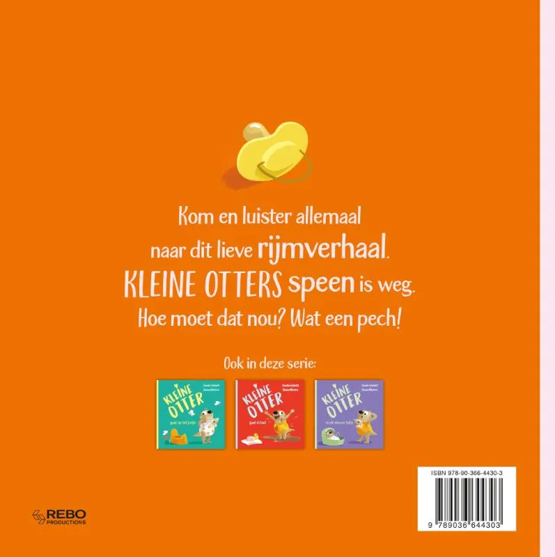 Kom en luister allemaal naar dit lieve rijmverhaal. Kleine Otters speen is weg. Hoe moet dat nou? Wat een pech!
