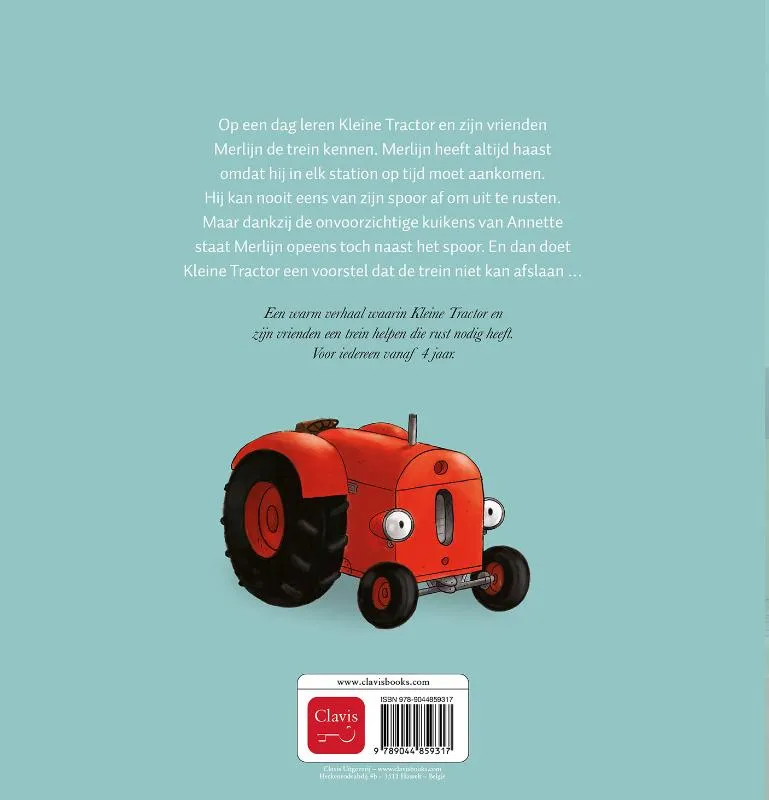 Op een dag leren Kleine Tractor en zijn vriendenMerlijn de trein kennen. Merlijn heeft altijd haastomdat hij in elk station op tijd moet aankomen.Hij kan nooit eens van zijn spoor af om uit te rusten.Maar dankzij de onvoorzichtige kuikens van Annettestaat Merlijn opeens toch naast het spoor. En dan doetKleine Tractor een voorstel dat de trein niet kan afslaan …Een warm verhaal waarin Kleine Tractor enzijn vrienden een trein helpen die rust nodig heeft.Voor iedereen vanaf 4 jaar.