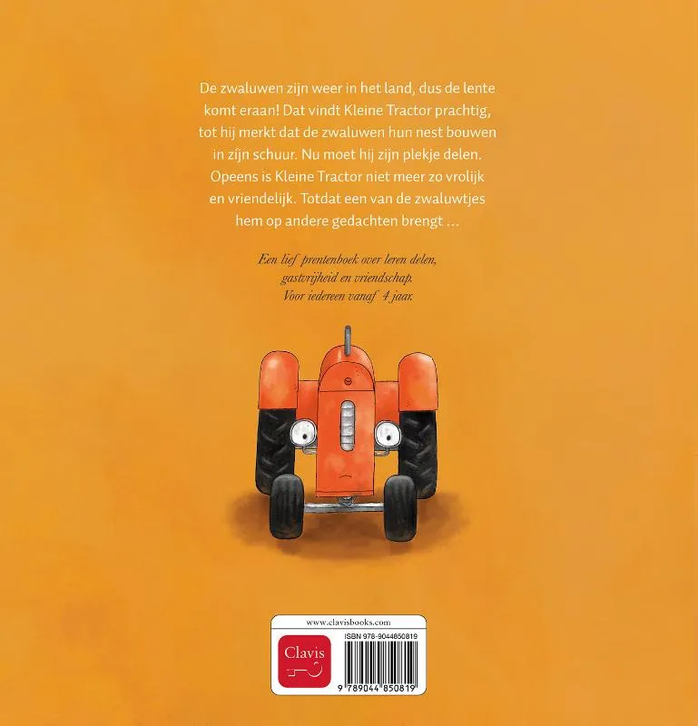 Dat vindt Kleine Tractor prachtig, tot hij merkt dat de zwaluwen hun nest bouwen in zíjn schuur.