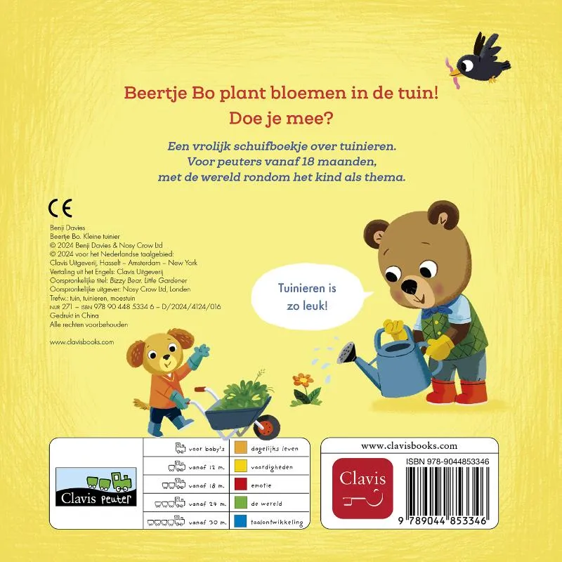 Beertje Bo plant bloemen in de tuin! Doe je mee? Een vrolijk schuifboekje over tuinieren. Voor peuters vanaf 18 maanden, met de wereld rondom het kind als thema.