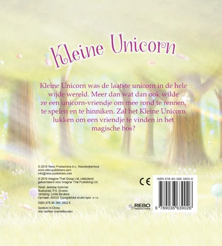 Kleine Unicorn was de laatste unicorn in de hele wijde wereld. Meer dan wat dan ook wilde ze een unicorn-vriendje om mee rond te rennen, te spelen en te hinniken. Zal het Kleine Unicorn lukken om een vriendje te vinden in het magische bos?