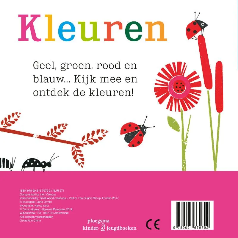 Ontdek de kleuren: waar horen ze bij? Het varken is roze, de regenworm ook. Maar de kikker is groen en de zwaan wit… Dit boek nodigt jonge kinderen uit tot het benoemen van de kleuren die ze zien, in het boek én daarbuiten.