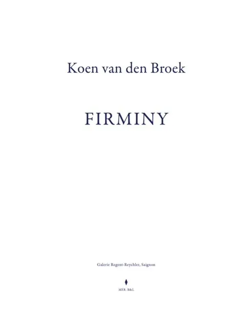 The mini catalogue Firminy gathers 11 paintings on paper and an in situ installation by Koen Van den Broek, made for his eponymous solo exhibition at the Regent-Reychler gallery in Saignon, in the south of France. The paintings, that belong to a larger group of similar works on paper, are inspired by the Saint-Pierre church in Firminy designed by Le Corbusier, and carry the same spirit as the building in terms of light, volume and linearity. These works reveal the interesting and direct relation between architecture and the practice of van den Broek, who originally started an education as architect before studying visual arts. The in situ installation in the gallery is a permanent intervention and a life scale interpretation of two paintings, one by the artist himself and one by Henri Matisse, who had a direct relation to the environment of the south of France.