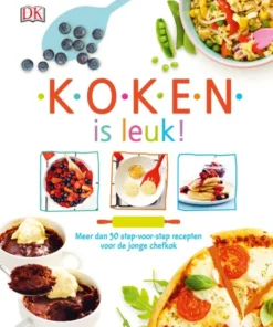 Koken is leuk! bevat alles wat de beginnende chefkok nodig heeft om aan de slag te gaan in de keuken. Aan de hand van duidelijke uitleg, veel foto’s en handige stappenplannen leren kinderen niet alleen hun eigen lievelingsgerechten klaar te maken, maar vooral ook hoe leuk koken is! Van tussendoortjes, lichte maaltijden en hoofdgerechten, tot smoothies, desserts en andere zoetigheden. Het boek geeft daarnaast veel handige tips en uitleg over producten en termen. Want wat betekent al dente eigenlijk en hoe snijd je het handigst een avocado? Koken is leuk! vormt de basis voor iedere jonge chef en zorgt niet alleen voor feest in de keuken, maar ook voor een feestje op tafel!