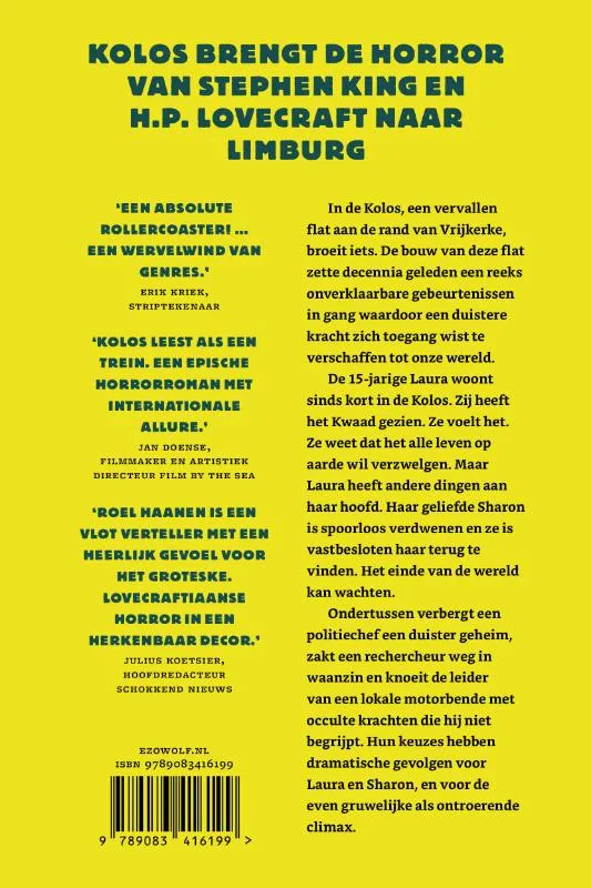 ‘KOLOS LEEST ALS EEN TREIN. EEN EPISCHE HORRORROMAN MET INTERNATIONALE ALLURE.’ Jan Doense, filmmaker en artistiek directeur Film by the Sea