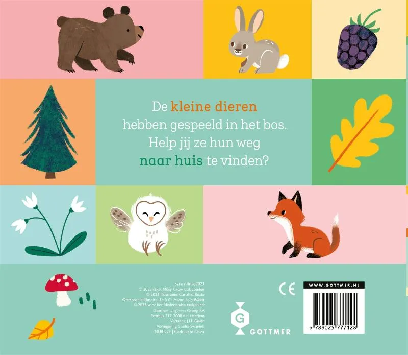 Ontmoet in ‘Kom je thuis, klein konijn?’ vier babydieren die in het bos hun weg naar huis moeten terugvinden. Kleine lezers kunnen in dit boek van dik karton met bewegende schuifjes in elke spread het konijntje, de vos, een babybeer en een jonge uil veilig thuisbrengen naar hun ouders. De peuters kunnen de schuifjes zelf heen en weer bewegen over vier unieke paden door een prachtig geïllustreerd bos. Ondertussen worden de fijne motoriek en concentratie gestimuleerd en komen er belangrijke eerste woordjes over de natuur langs.