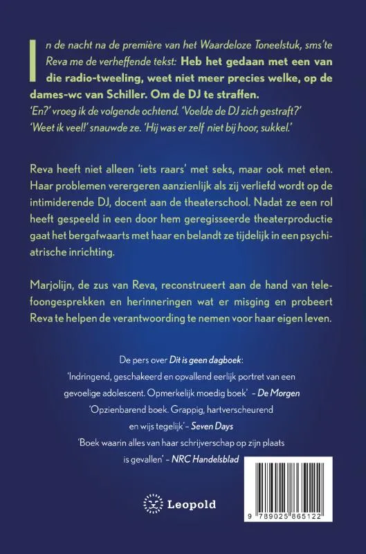 In de nacht na de première van het Waardeloze Toneelstuk, sms’te Reva me de verheffende tekst: Heb het gedaan met een van die radio-tweeling, weet niet meer precies welke, op de dames-wc van Schiller. Om de DJ te straffen.<br>