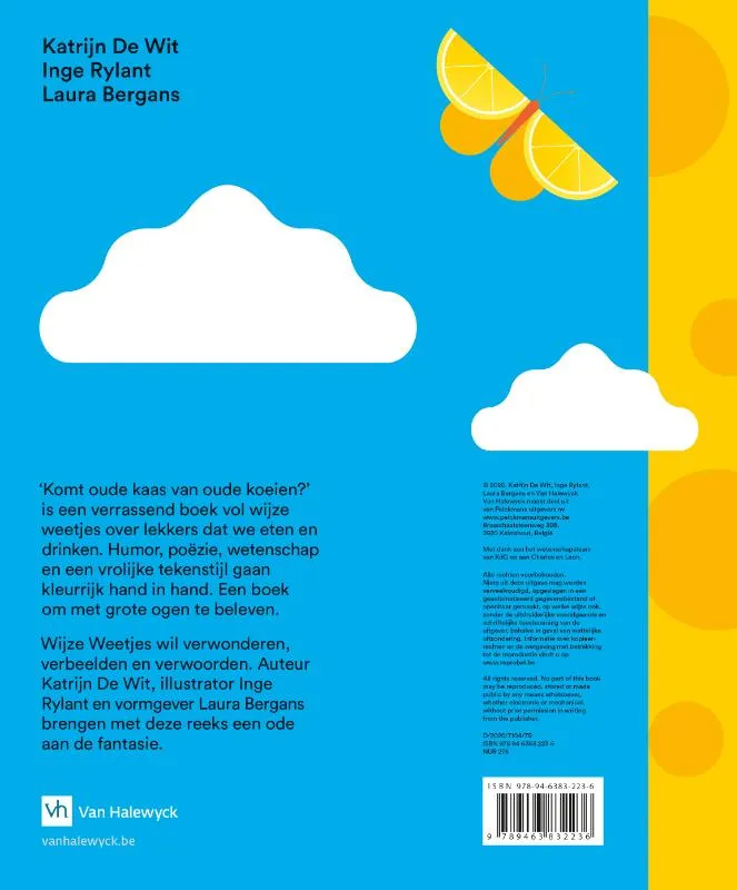 ‘Komt oude kaas van oude koeien?’ is een verrassend boek vol wijze weetjes over lekkers dat we eten en drinken. Humor, poëzie, wetenschap en een vrolijke tekenstijl gaan kleurrijk hand in hand. Een boek om met grote ogen te beleven. Wijze Weetjes wil verwonderen, verbeelden en verwoorden. Auteur Katrijn De Wit, illustrator Inge Rylant en vormgever Laura Bergans brengen met deze reeks een ode aan de fantasie.