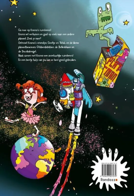 Ontmoet Kosmo’s vriendjes Geeltje en Tiktak, en de kleine planeetbewoners Glibberdebibber, de Bellenblazer en de Discobalvogel.